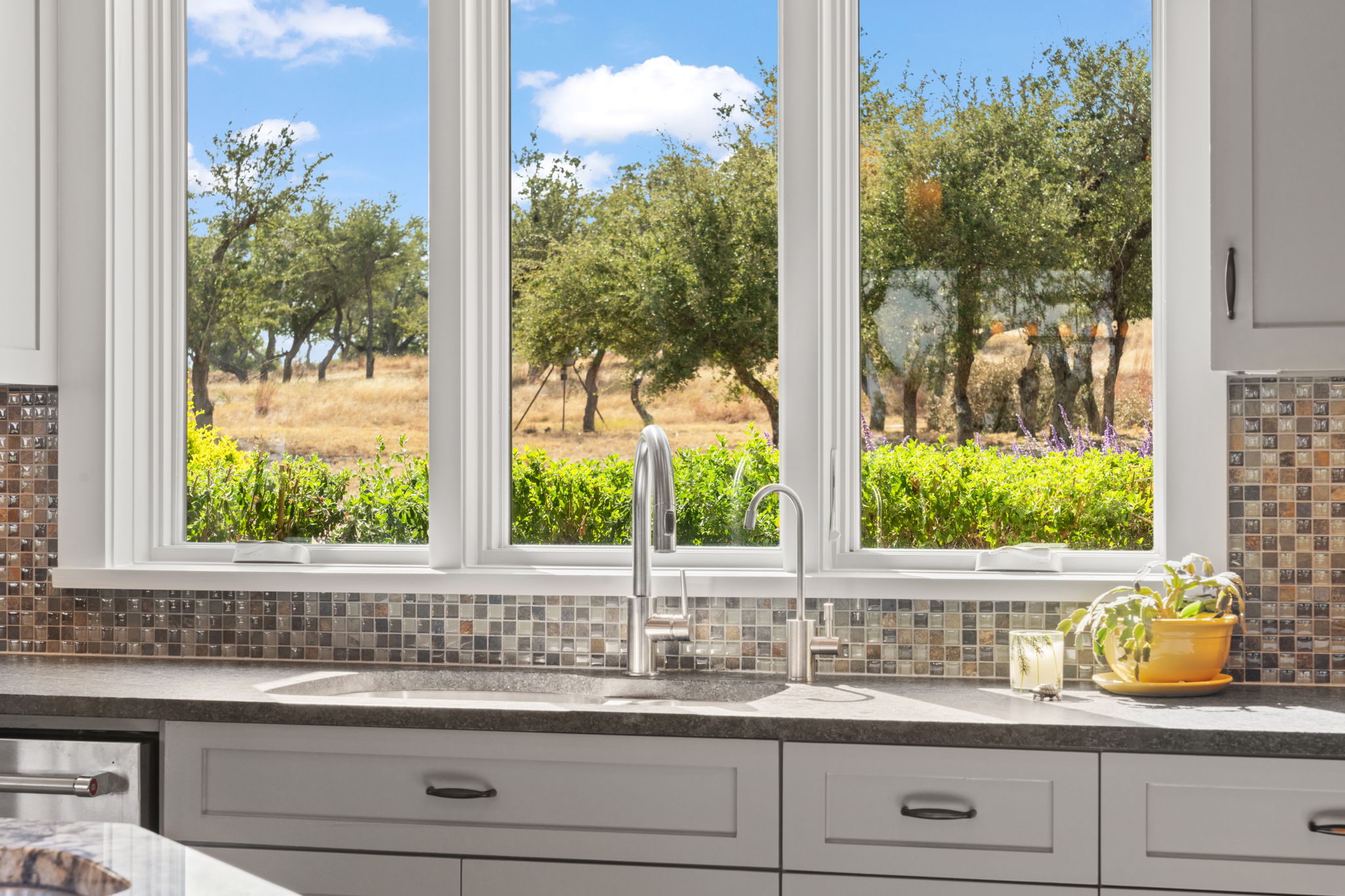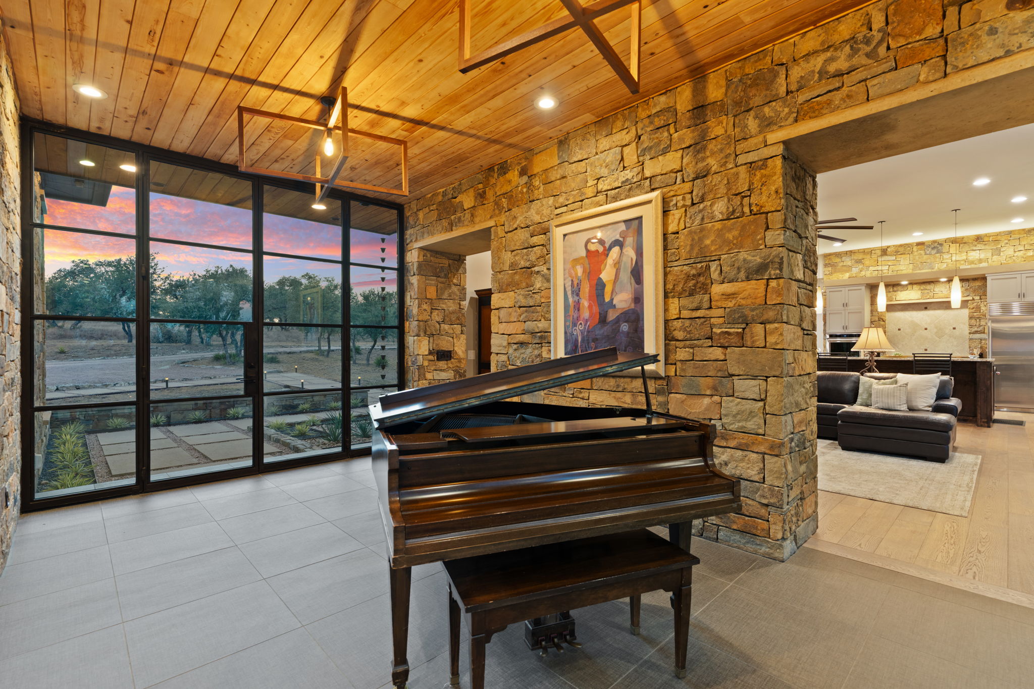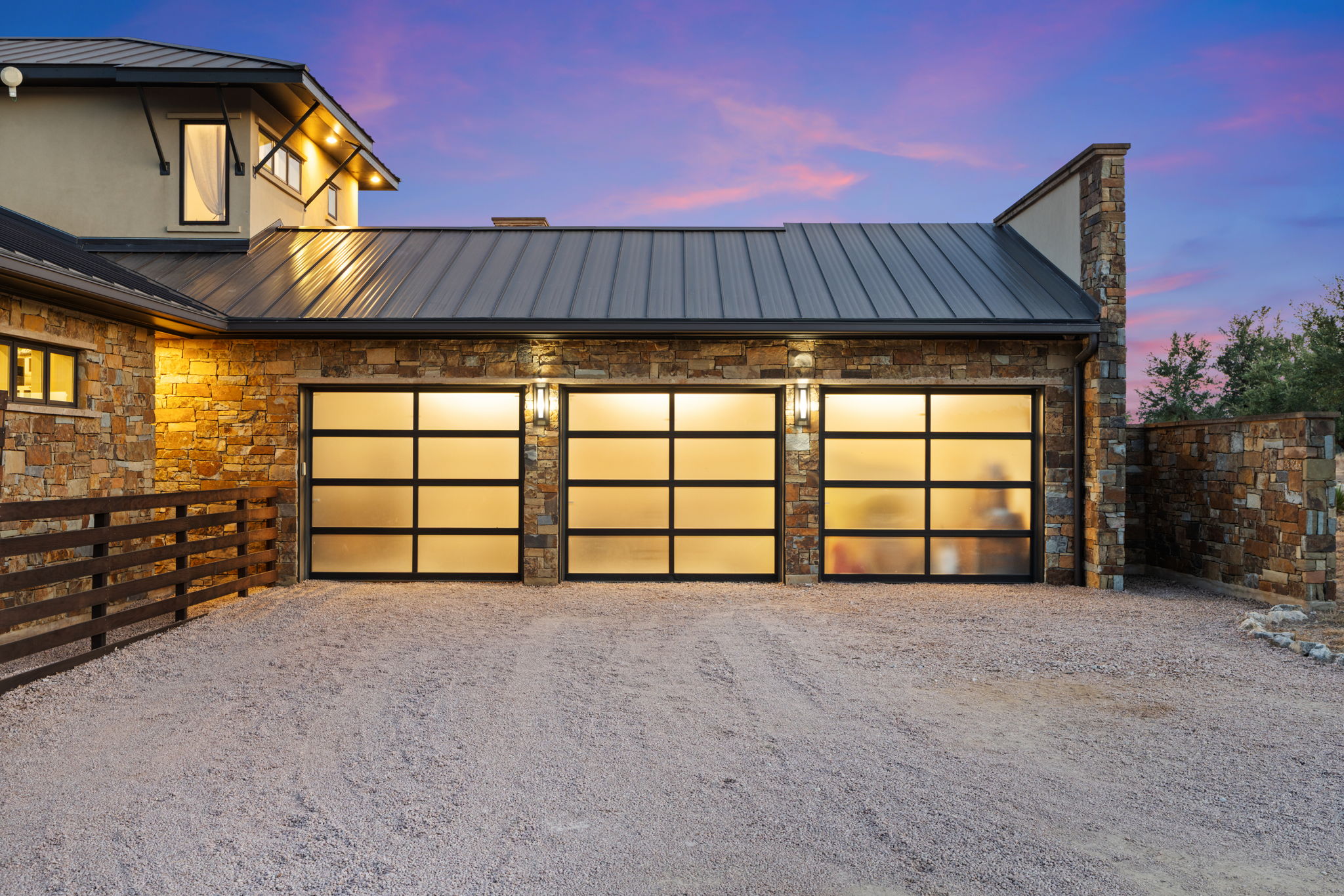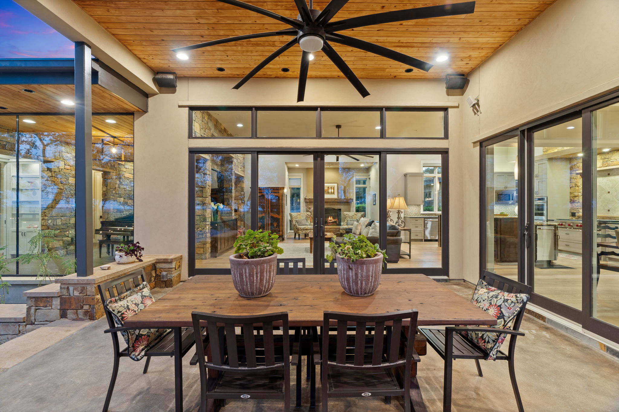 Perched on a ridge in Travis County, the stately residence, built in 2016 by renowned Austin custom home builder Ray Tonjes, commands long-distance views, blending architectural elegance with warm, inviting charm. The home features a stunning stone and stucco façade, complemented by a stone hearth and rich wood floors. Floor-to-ceiling windows greet visitors upon entry, flooding the interior with natural light. The gourmet kitchen is a chef’s dream, equipped with a Wolf range and Subzero refrigerator. The main level includes a luxurious primary suite, a mother-in-law suite, and two private office areas, while upstairs offers two additional bedrooms with a shared living area. All bedrooms feature ensuite baths for ultimate comfort. Additional highlights include an expansive covered outdoor living area with an outdoor kitchen and grill, a well-appointed laundry room with built-ins and a dog door, multiple storage areas, and an oversized three-car garage. The home utilizes a 40,000-gallon rainwater harvesting system, tied into the gutter system, for all water needs.