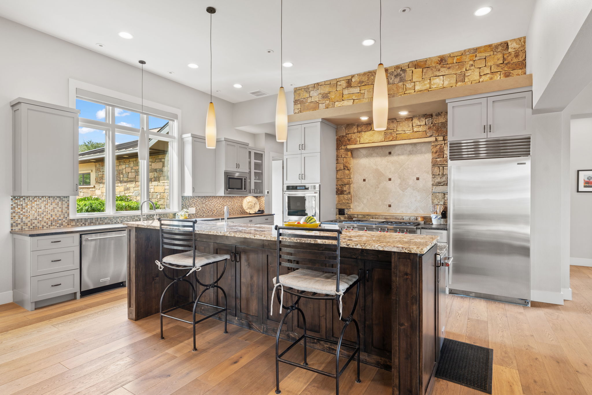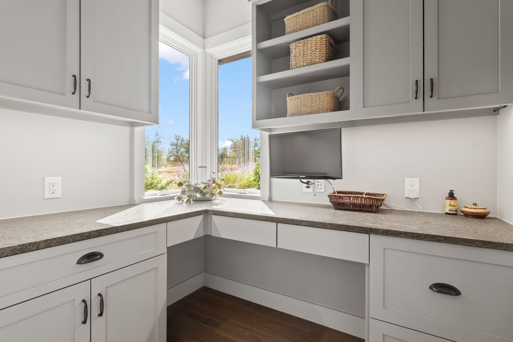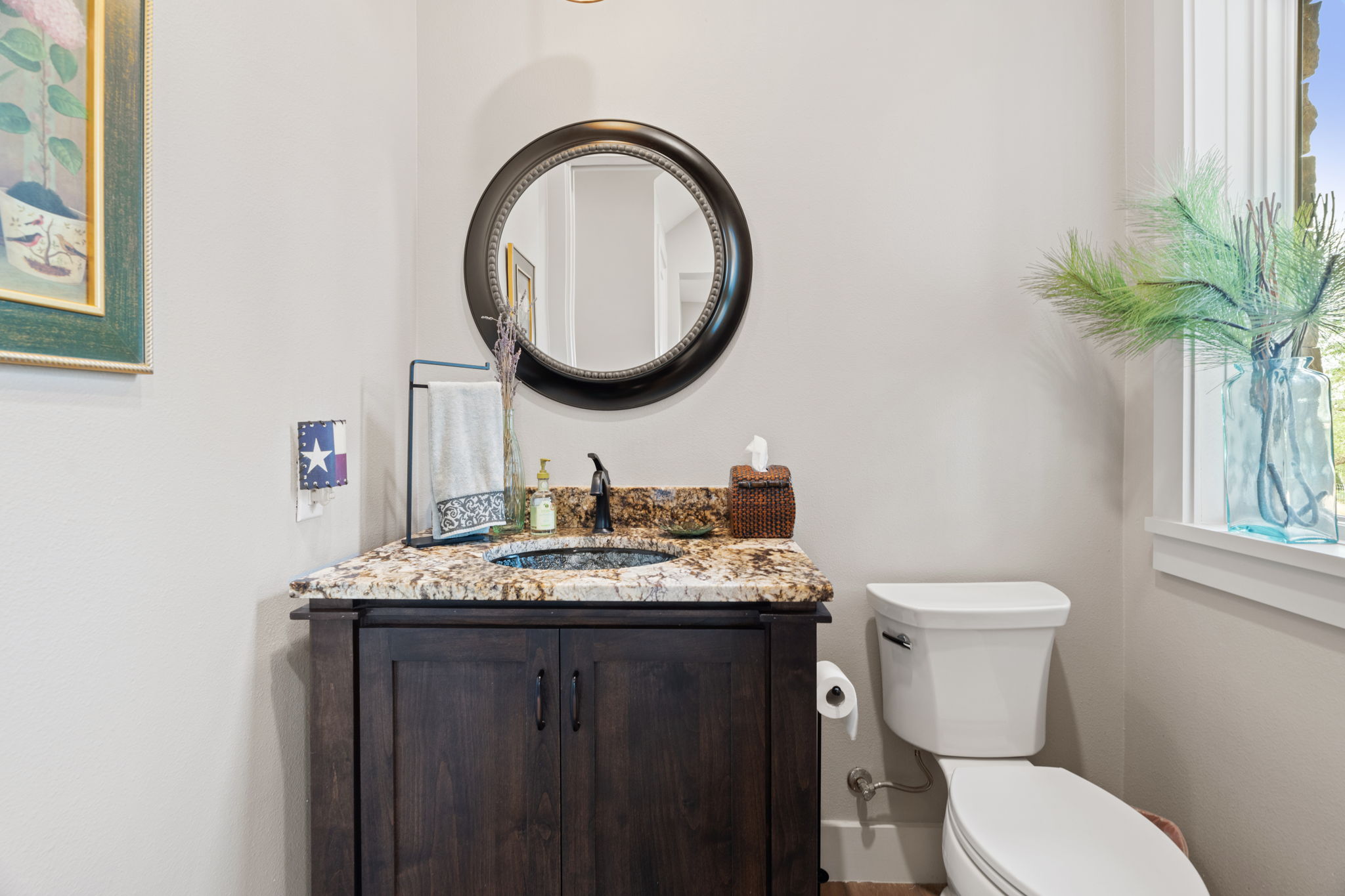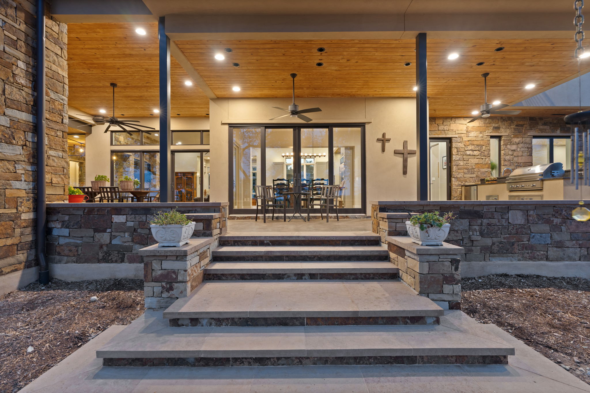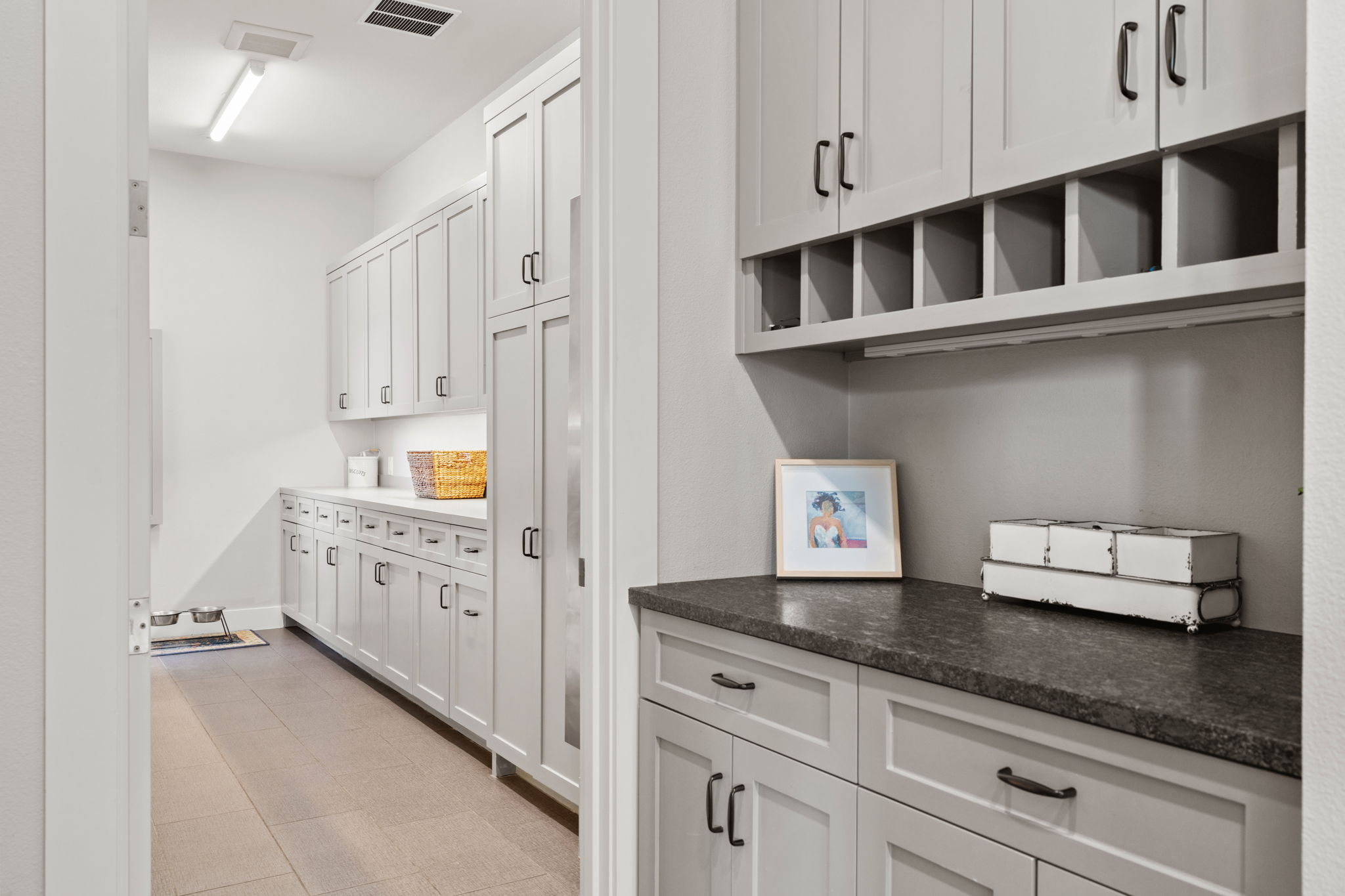 Perched on a ridge in Travis County, the stately residence, built in 2016 by renowned Austin custom home builder Ray Tonjes, commands long-distance views, blending architectural elegance with warm, inviting charm. The home features a stunning stone and stucco façade, complemented by a stone hearth and rich wood floors. Floor-to-ceiling windows greet visitors upon entry, flooding the interior with natural light. The gourmet kitchen is a chef’s dream, equipped with a Wolf range and Subzero refrigerator. The main level includes a luxurious primary suite, a mother-in-law suite, and two private office areas, while upstairs offers two additional bedrooms with a shared living area. All bedrooms feature ensuite baths for ultimate comfort. Additional highlights include an expansive covered outdoor living area with an outdoor kitchen and grill, a well-appointed laundry room with built-ins and a dog door, multiple storage areas, and an oversized three-car garage. The home utilizes a 40,000-gallon rainwater harvesting system, tied into the gutter system, for all water needs.